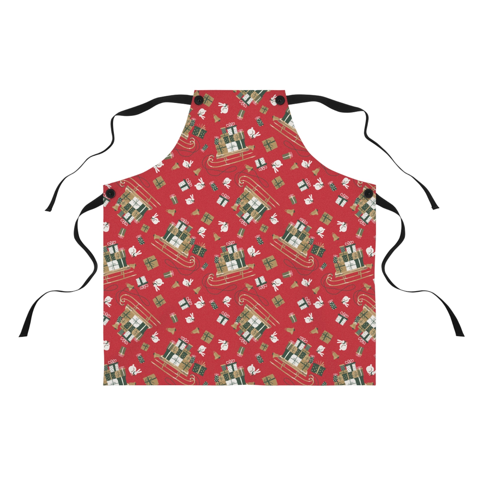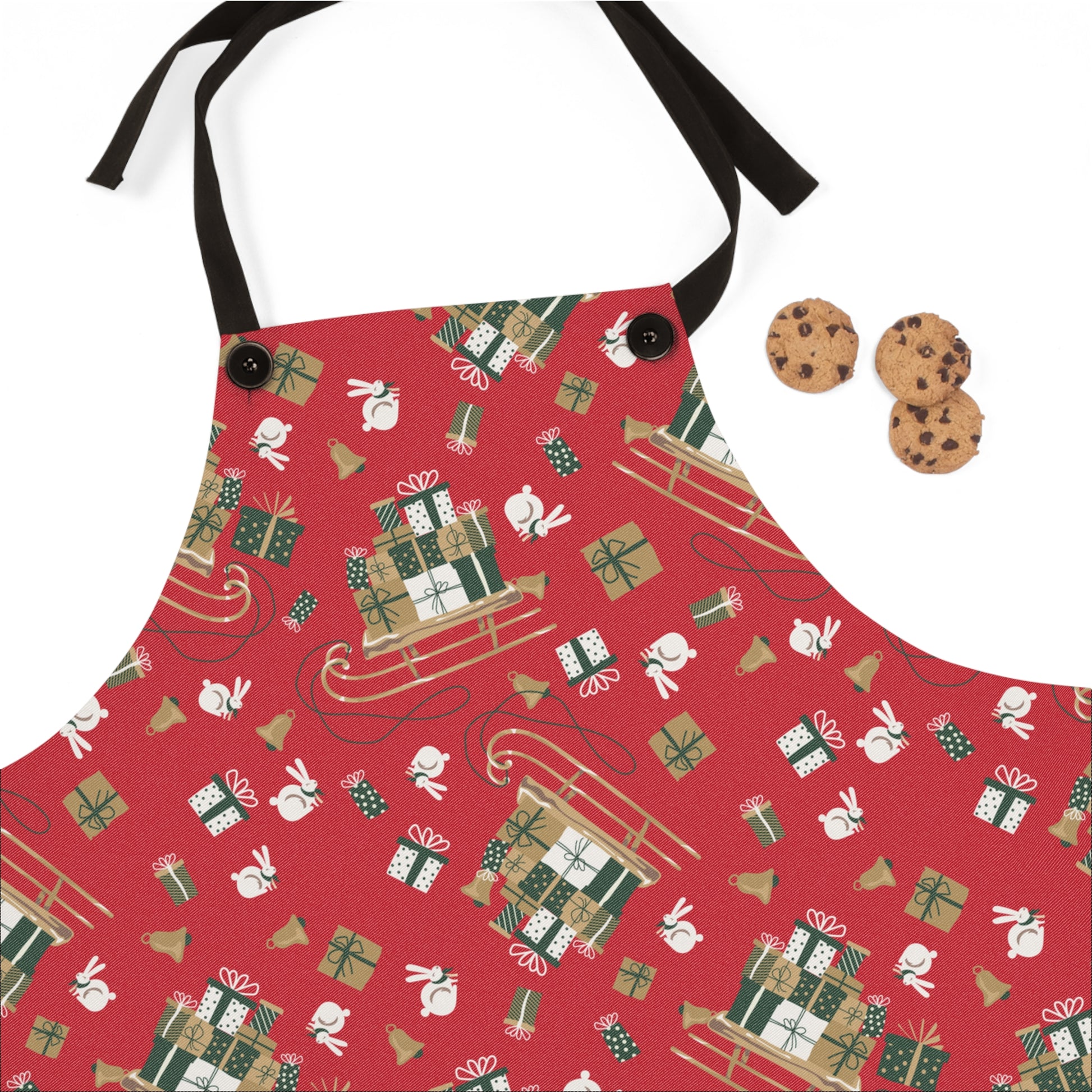 Add a touch of festive cheer to your kitchen with this vibrant apron, perfect for cooking and baking enthusiasts. The rich red fabric adorned with charming holiday sleighs and bunnies creates a joyful atmosphere, making every meal preparation feel like a celebration. This apron is an ideal companion for family gatherings, holiday parties, and cozy baking days, bringing smiles to both the cook and those sharing the meal. Designed for anyone who loves to celebrate the festive season—be it seasoned chefs or casual bakers—it’s an essential accessory for Christmas, Thanksgiving, and other joyous occasions. Let this apron inspire creativity and warmth in your culinary adventures!